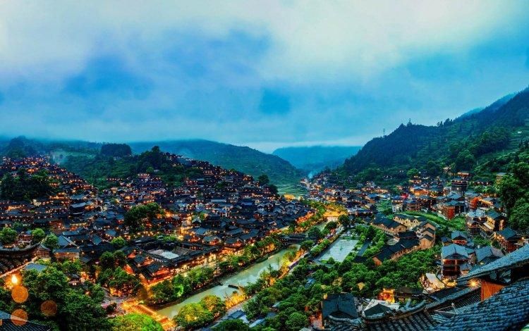 千户苗寨是贵州比较有代表性的景点,寨子的尽头是一片田园风光,整齐的梯田,风景十分震撼。登上高处可以看到这里非常有名的夜景,九天繁星落苗寨~(喜欢摄影的朋友千万别错过)。苗寨还有一道特色就是当地最具特色的苗家长桌宴,是苗族宴席的最高形式与隆重礼仪,已有几千年的历史。