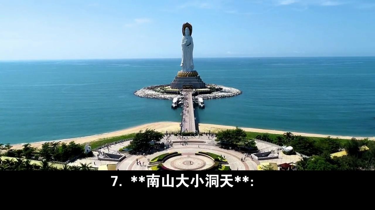 ·7.南山大小洞天:位于三亚市西部,是中国最南端的道家文化旅游区,拥有奇特的海蚀地貌和悠久的历史文化。