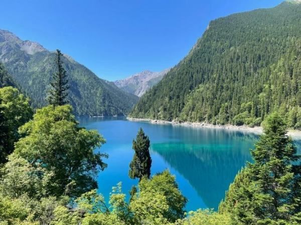 以其蓝色湖泊、多彩的树林和瀑布而著名。九寨沟位于四川省阿坝藏族羌族自治州境内,是中国著名的风景名胜区之一,以其独特的地貌和自然景观而著名。九寨沟被誉为“人间仙境”,有着蓝色湖泊、多彩的树林和瀑布等美景,是旅游者的天堂。在中秋国庆期间,游客可以欣赏到九寨沟的美丽景色,感受大自然的魅力。