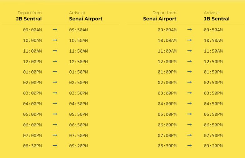 JB Sentral发车时间: