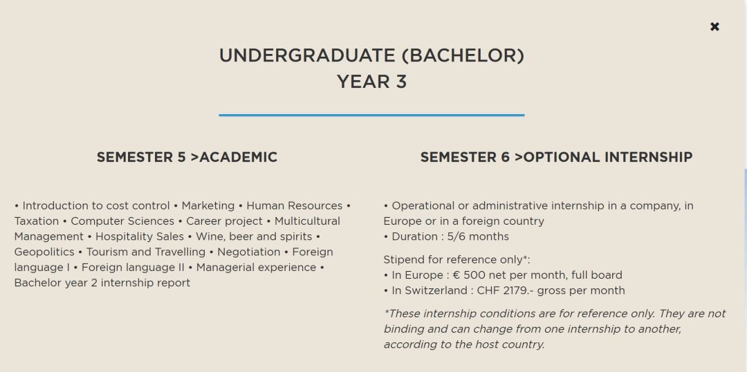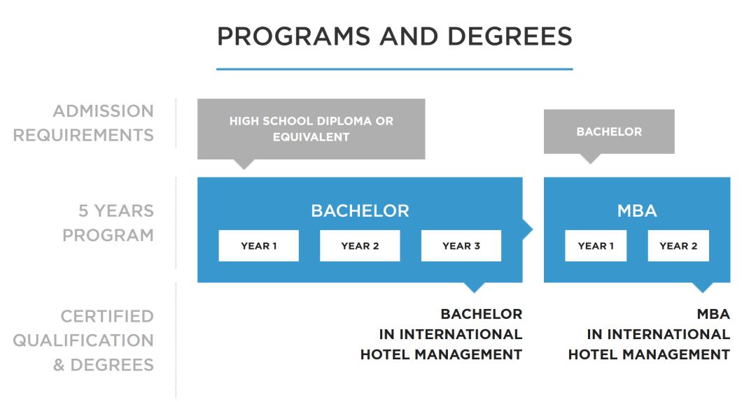 瓦岱勒国际酒店与旅游管理学院的学制为5年制: