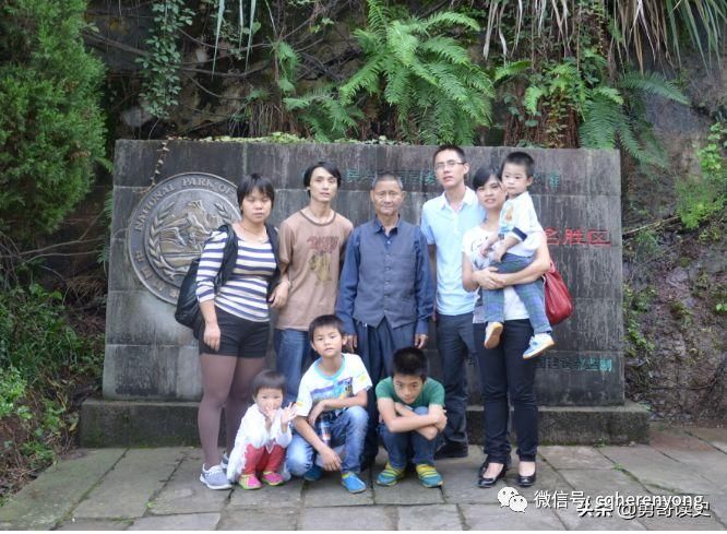 下午3点多钟,我们终于参观完了张飞庙,即将离开。来到门口时,我们一大家子人聚集在石碑前,照了一张合影。站在父亲旁边的,是他两个儿子。在两个儿子旁边,是两个儿媳妇。抱着和蹲着的4个孩子,是他的孙子、孙女。