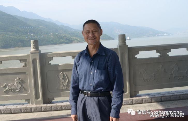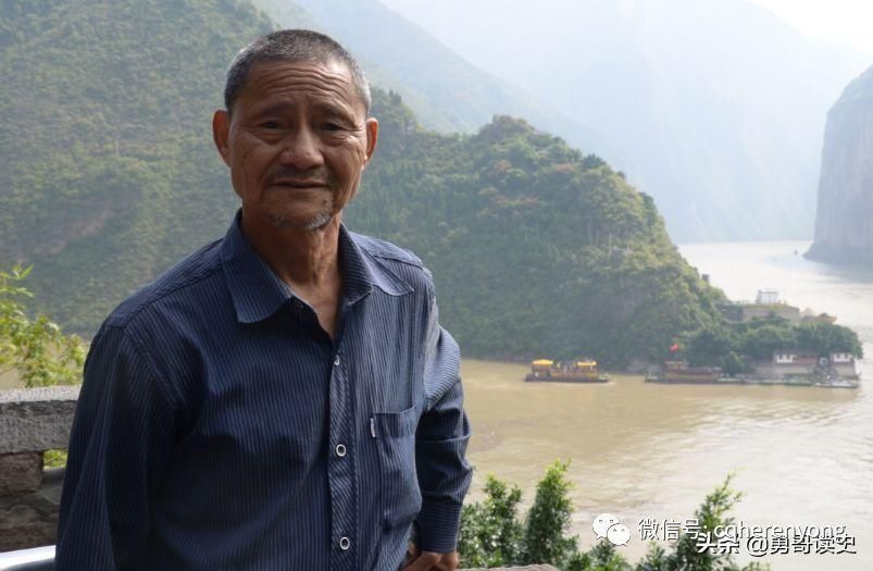 父亲照相的地方,是著名的夔门风光,也是许多游客来到白帝城必须拍照留念的地方。父亲有些疲惫了,但还是配合我,照了好几张照片。在父亲的身后,是以险峻闻名的瞿塘峡。前几天下了一场大雨,长江水有些发黄。几艘轮船正在逆水而上。