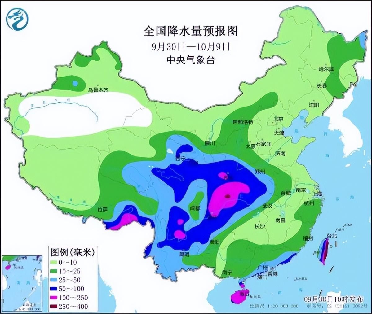今天是10月1号,周六,也是国庆假期的首日。人们纷纷涌向外出游玩,场面热闹非凡。然而,你正在为即将到来的国庆假期计划行程,盼望着一场别具特色的假期,然而,华西地区仍多降雨天气,甘肃南部、陕西中南部、河南西部和南部、湖北、重庆、四川东部等地有中到大雨,其中陕西南部、河南西南部、湖北西部、重庆、四川东北部等地的部分地区有暴雨、局地大暴雨,这对你的出行计划可能会带来一些挑战。