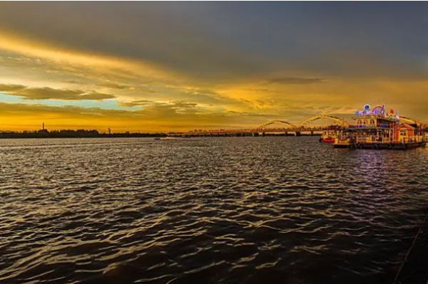 中央大街走到尽头,便是著名的松花江。冬天是松花江最好玩的季节,这时江面结冰,厚达几米,人从江面可以步行到达对岸,这时,江面上就会布满雪地摩托、狗拉雪橇、雪地自行车等等冰上娱乐项目,吸引了很多游人前来。