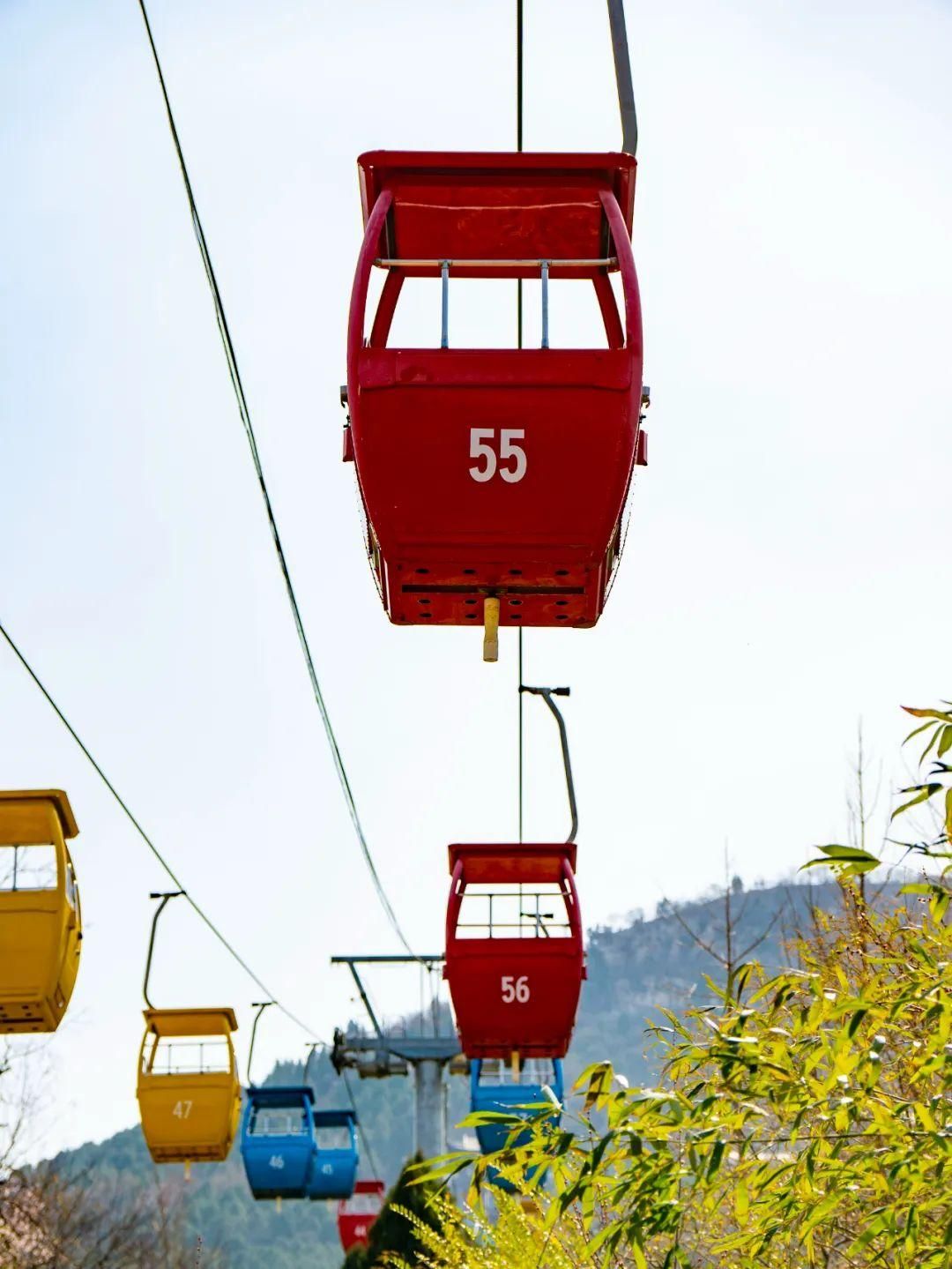悬于千佛山半山腰的索道上,流动着彩色的吊笼,颜色靓丽,点缀在千佛山的万丛翠绿之中,显得更为耀眼。