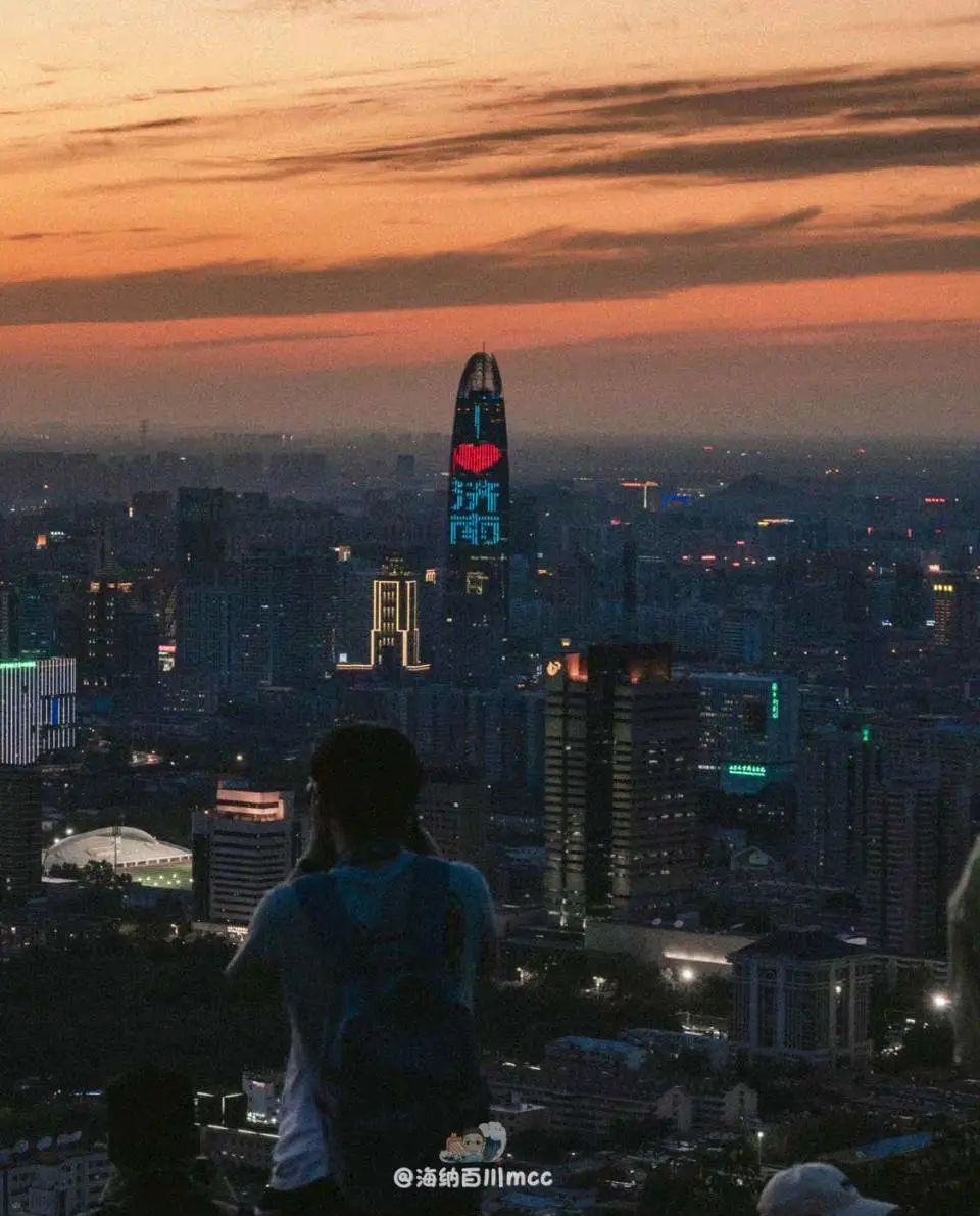 来千佛山最浪漫的事是登上千佛山顶,迎一轮日出,追一场晚霞,看山河远阔,观落霞满天,等待绿地中心亮起“I ❤️济南”的那一刻。