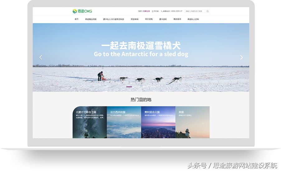 除了综合类门户网站,我们也有一些朋友是专做某些特定的产品线,或者说是产品类型较少的。思途的专业之处就在于,他们对旅游业有深入的研究,对我们的业务也非常的了解。因此,思途也有专门针对做定制游、单产品的网站定制的简约门户首页模板。整套模板不管是在配色,还是在整体的架构方面,都非常的坚决大气,也比较符合高端旅游网站的定位。产品展示方面也非常的有精致感,不会有那种纷繁杂乱的感觉。虽然简约,但这套模板并不简单,仔细浏览的话,可以发现像攻略、导游、定制等模块,思途简约门户首页模板都一应具备,基本上也可以满足站长们的个性需求了。