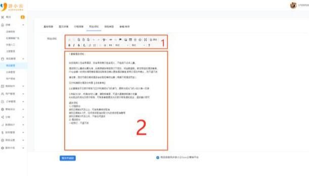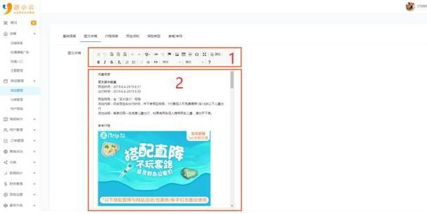 ②板块2为图文详情的编辑区域,可在此编辑框内编辑内容、插入图片等等