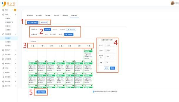 ④板块4可以批量编辑选择的日期,编辑内容为:成人价、儿童价、单房差价、数量,确认编辑后,点击“保存”按钮。如需清空所选内容,点击“清空”按钮清空内容