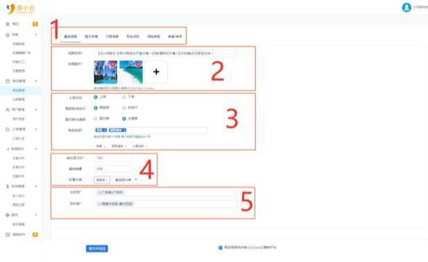 ④板块4可填写商品价格与销量,并选择商品的分类,如“跟团游”