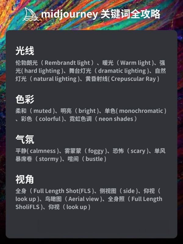 伦勃朗光(Rembrandt light) 、暖光(Warm light) 、强光(hard lighting) 、舞台灯光(dramatic lighting) 、自然灯光(natural lighting) 、黄昏射线(Crepuscular Ray)