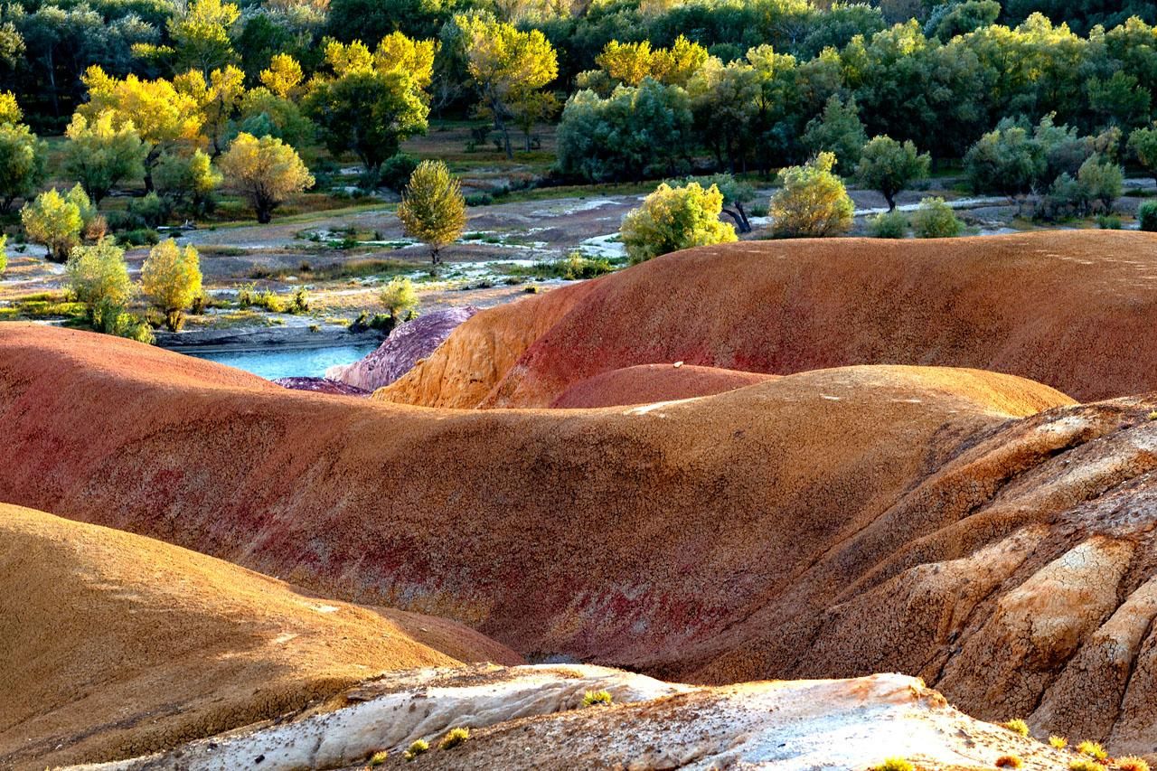 新疆有五彩湾、五彩城、五彩滩,分布不同地区,以布尔津的五彩滩最为迷人