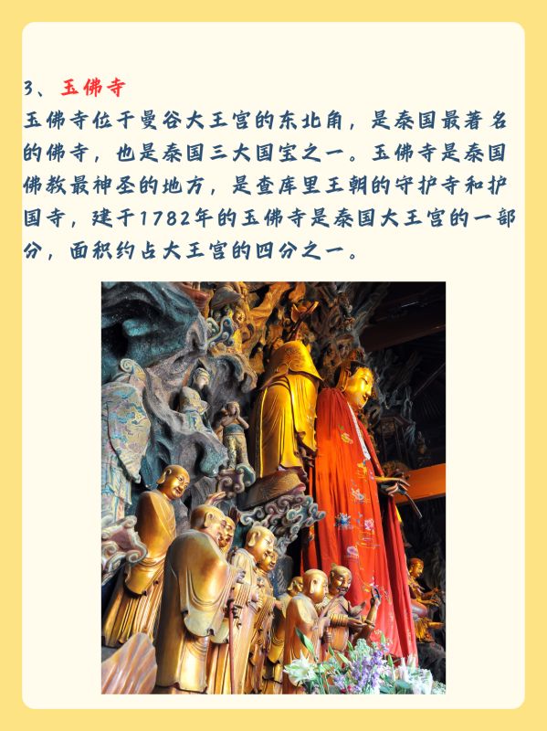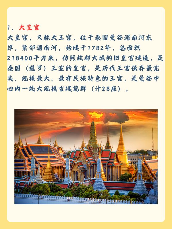 2. 选择目的地:泰国有很多著名的旅游城市,如曼谷、清迈、普吉岛等。根据自己的兴趣和预算,选择一个或多个目的地进行游览。