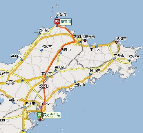 6 沿威乌高速走30公里左右(蓬莱西)下,向北直行12公里到达市区,直行第二个红绿灯(长途车站路口)左转2公里到达蓬莱港