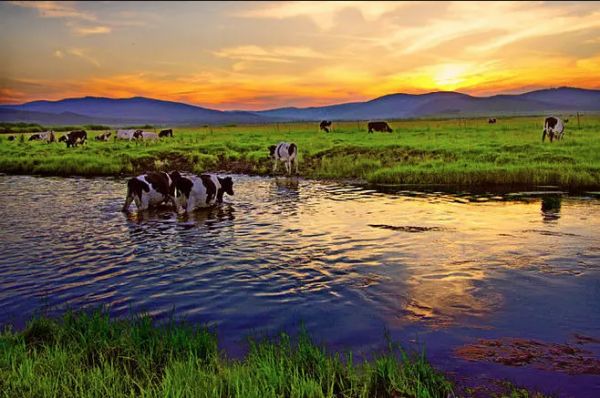 恩和是我国唯一的俄罗斯民族乡,每天看红霞为蓝顶小木屋染上金边,血色的晚霞倒映在清澈的河水中,看着牛儿自日出的微光中走来,又在如同颜料泼洒开一般浓烈的夕阳中归去,真的很美。