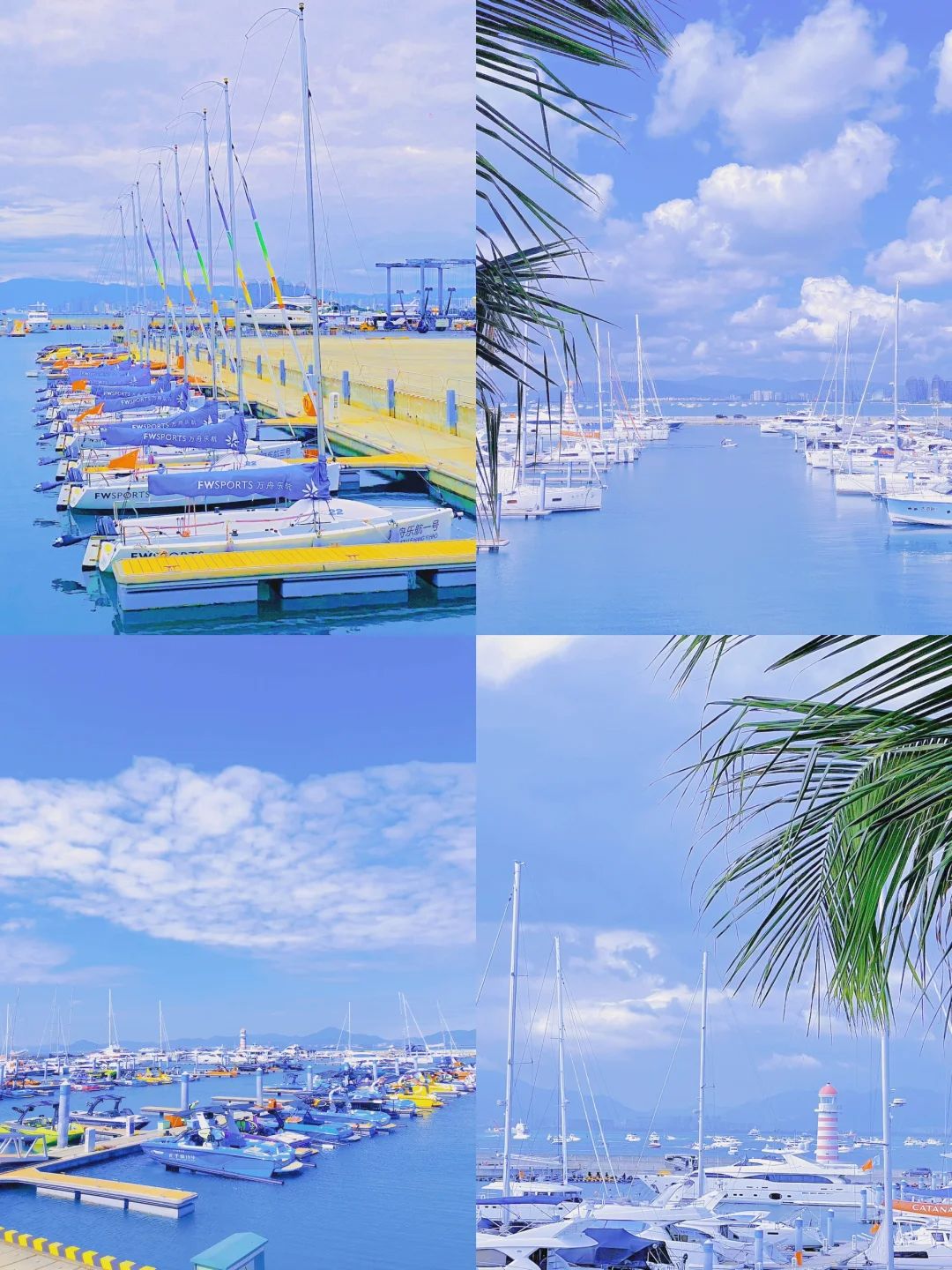 - 三亚大东海半山半岛帆船港:岸边停满了帆船,蓝天大海,帆船海边度假感瞬间拉满,非常适合打卡拍照。