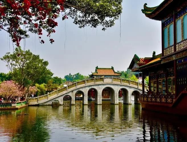 6、余荫山房。为清代举人邬彬的私家花园,距今已有130多年,小巧玲珑,布局精细,园中亭台楼阁、堂殿轩榭、桥廊堤栏,岭南建筑风格。位于广州市番禺区南村北大街。园中之砖雕、木雕、灰雕、石雕等四大雕刻作品丰富多彩,尽显名园古雅之风。还有古树参天,奇花夺目,值得走走逛逛。