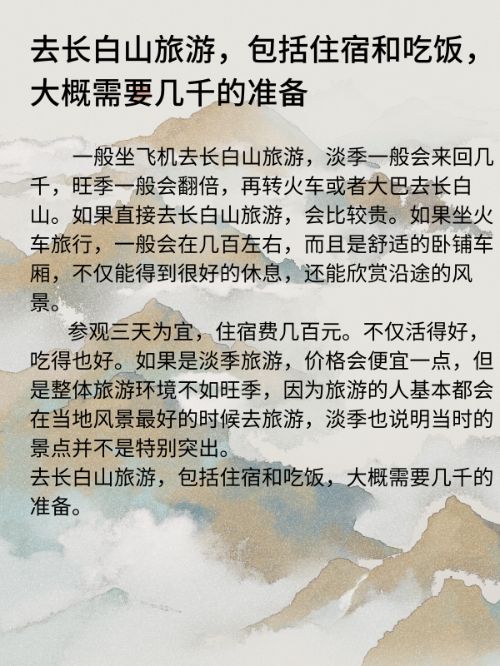 去长白山旅游,包括住宿和吃饭,大概需要几千的准备。