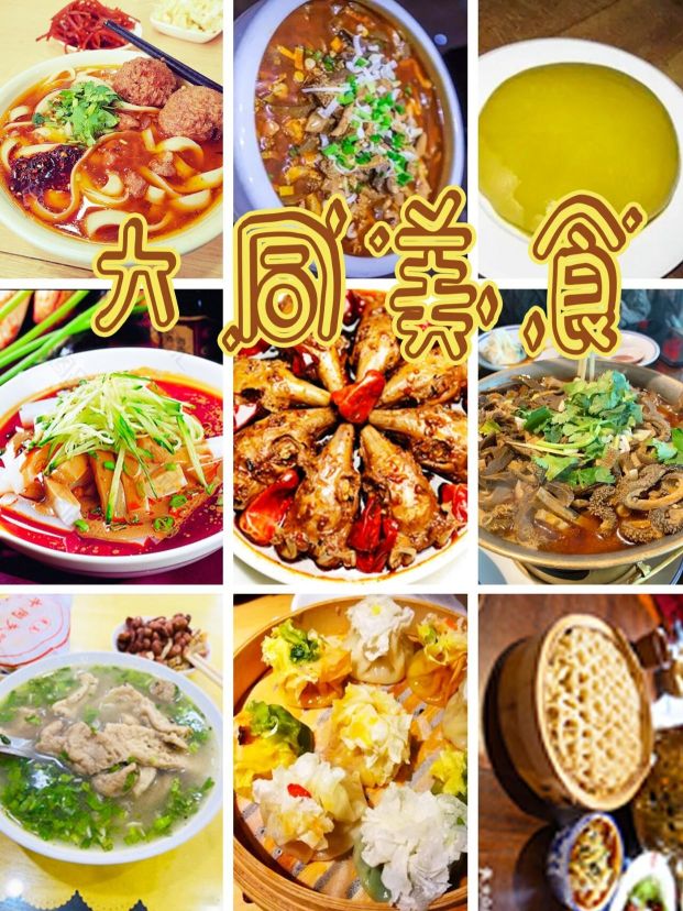 本地美食:刀削面、羊杂、凉粉、兔头、大同黄糕、莜面、涮羊肉、百花烧麦、开锅豆腐