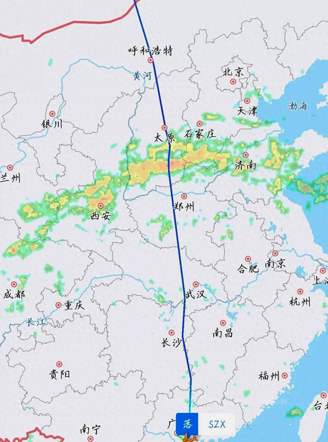 当飞机飞越蒙古国上空,距离深圳还有不到3个小时的飞行时间。此时,飞机的巡航高度为10698米,飞行速度为885公里每小时。随后,飞机被引导升至11308米,这是整个飞行的最高点。飞机在这个高度维持了一段时间,飞越了中国内蒙古、山西、太原等地的上空。