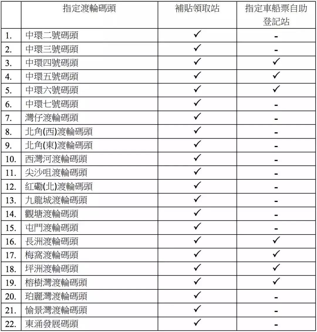 长洲码头、梅窝码头、中环5号码头及中环6号码头
