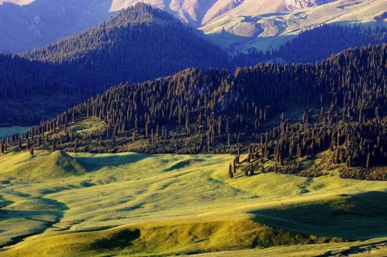 位于新疆沙湾县,天山国防公路直通景区,交通便利,是天山北麓最好的草场之一,处于哈比尕山的低谷丘陵地带,东至大南沟,西到巴音沟,南依山高坡陡的哈比尕山,北界为博尔通古乡政府,地表起伏平缓,草原一望无际,纵横50平方公里。鹿角湾一带曾是天山马鹿繁衍生息之地,成群的马鹿每年要蜕落一次角壳,在山涧、水边遗留下大量的鹿角壳,鹿角湾因此得名。