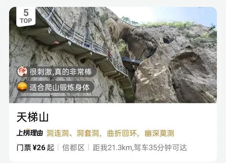 天梯山洞连着洞,洞套着洞,曲折回转而幽深莫测,票价26元起。