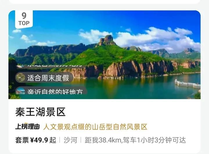 秦王湖景区是人文景点点缀的山丘形自然风景区,票价49.9元起。