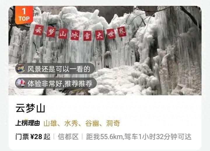 云梦山以山雄,水秀,谷幽,洞奇而上榜第一名,票价28元起。