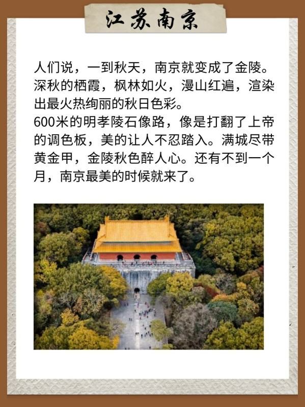 11月的南京,满城的梧桐树开始变黄,漫步在街头巷尾,仿佛进入了一个金色的世界。此时正是南京最美的季节,你可以欣赏到栖霞山的红叶、明孝陵的银杏大道、颐和路的民国风情等美景。