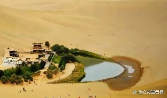 月牙泉是甘肃敦煌市的一个景点,处于鸣沙山之中,就像是一个月牙一样,非常漂亮。