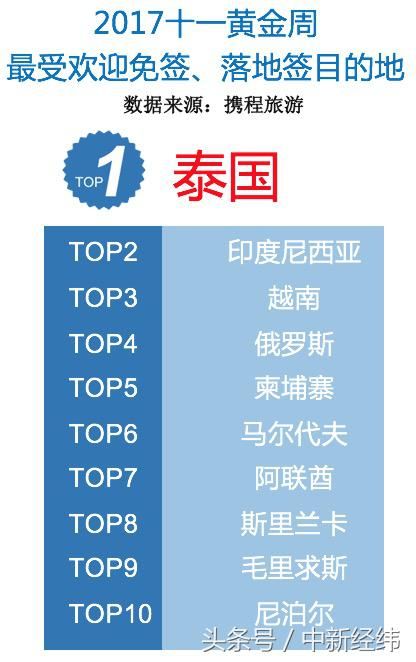根据携程跟团游、自由行、邮轮等出境业务数据,2017十一黄金周人气排名前二十的出境游国家(地区)依次是:泰国、日本、新加坡、越南、美国、中国香港、马来西亚、中国台湾、印度尼西亚、菲律宾、俄罗斯、澳大利亚、柬埔寨、加拿大、意大利、马尔代夫、德国、英国、阿联酋、斯里兰卡。