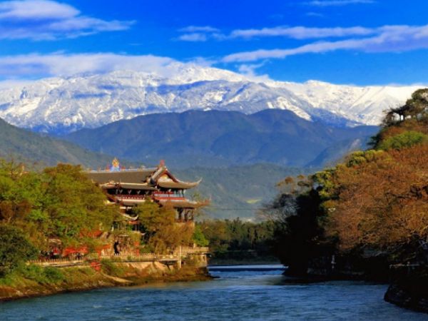都江堰景区,位于都江堰市城西岷江干流上,由秦国蜀郡太守李冰及其子于西元前256年左右修建,是目前中国保存完整的古代水利工程。工程由鱼嘴分水堤、飞沙堰溢洪道、宝瓶口引水口三大主体工程和百丈堤、人字堤等附属工程构成,把汹涌的岷江分隔成外江和内江,外江排洪,内江引水灌溉,使川西平原成了“天府之国”。