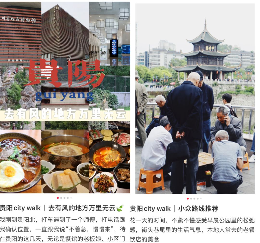 伴随着这股风潮,一些网友也总结了贵阳的City Walk线路推荐。有省府路——电台街——文昌阁的寻觅老贵阳之旅,也有甲秀楼——护国路——民生路的烟火气路线。这种旅行方式与贵阳的“慢生活”不谋而合,也让游客真正体验到“做一天贵阳人”的乐趣。