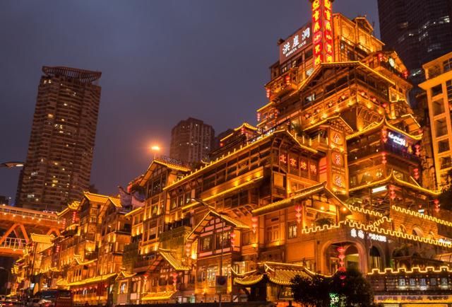 当你在坐两江游轮的时候,你会看到一片充满魔幻色彩的建筑群,犹如宫崎骏的电影《千与千寻》的场景,那便是洪崖洞。