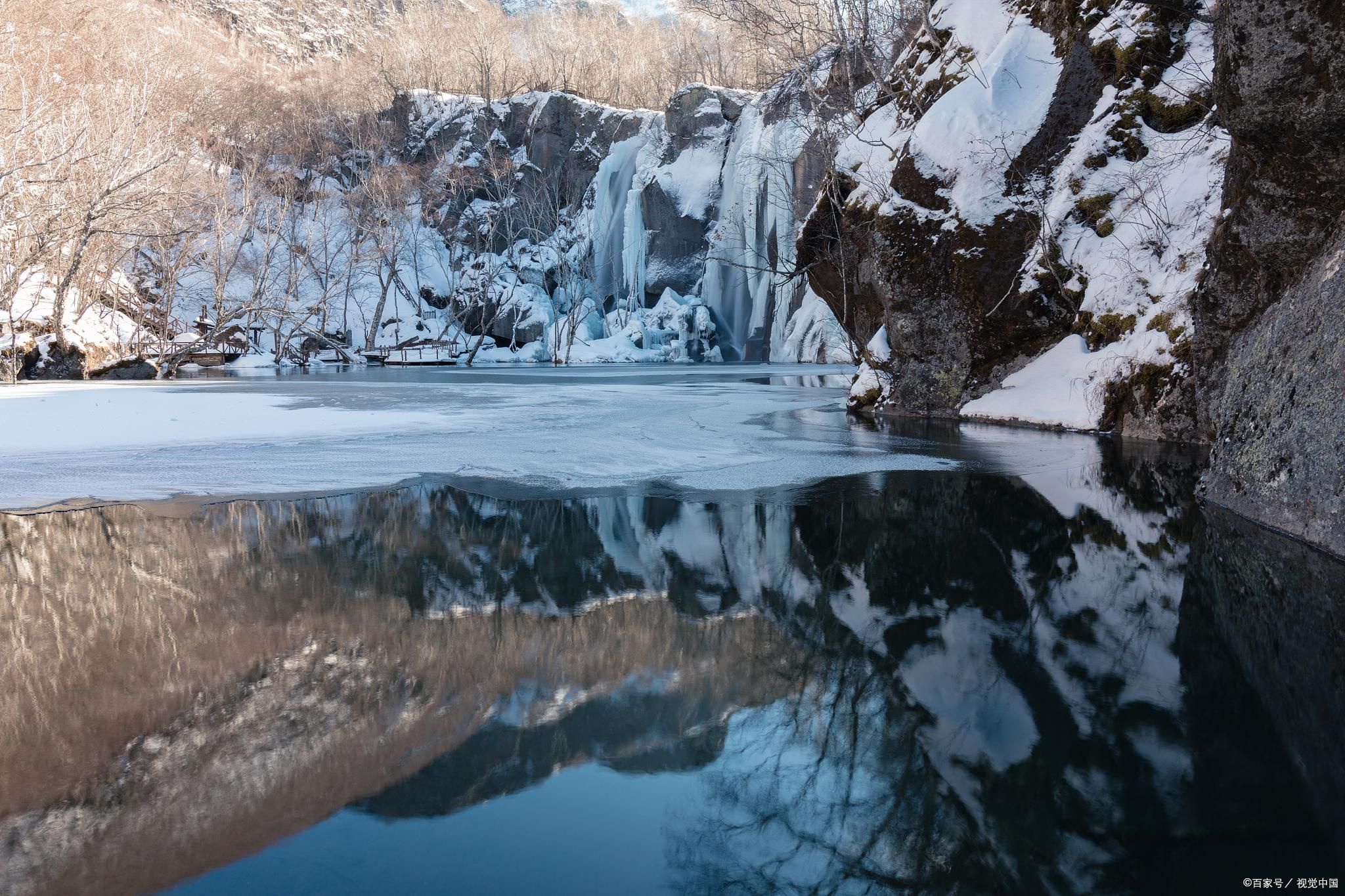 这里的山峦和湖泊在雪的覆盖下更显宁静,瀑布也变成了冰瀑。