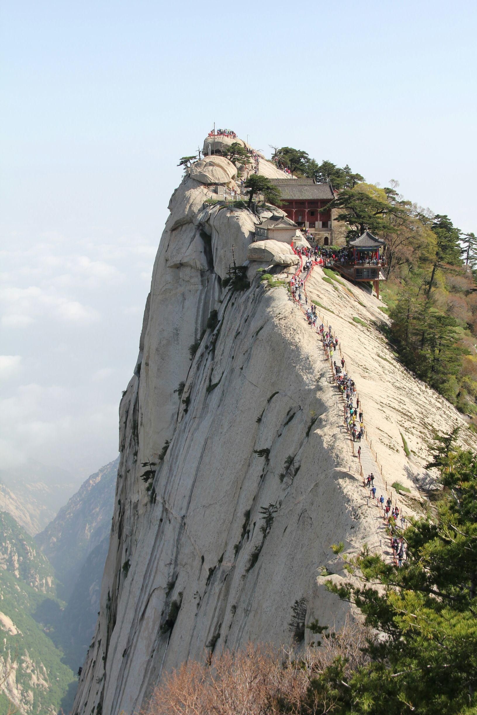 华山,古称“西岳”,是我国著名的五岳之一,海拔2154.9米,位于陕西省西安以东120公里历史文化故地渭南市的华阴市境内,北临坦荡的渭河平原和咆哮的黄河,南依秦岭,是秦岭支脉分水脊的北侧的一座花岗岩山。凭借大自然风云变换的装扮,华山的千姿万态被有声有色的勾画出来,素有“奇险天下第一山”之称。它的历史衍化可追溯到1.2亿年前,据《山海经》记载:“太华之山,削成而四方,其高五千仞,其广十里。”