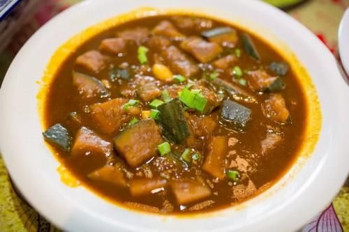 八大碗的半汤半菜,都是用大碗来盛。碗大凸显北方人的豪气、爽朗、大气,半汤半水则显出南方人的细腻和精打细算了。