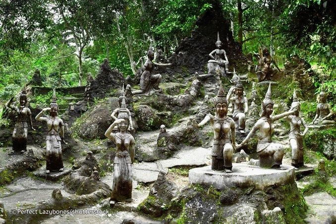 隐秘的佛园藏在苏梅岛内部的高山上,在茂密的丛林中展现出壮丽的景色和不寻常的雕像收藏。这些花园是老萨梅果农尼姆·通素克的创造,他于1976年开始在他家青翠的土地上竖立几座雕像和寺庙。