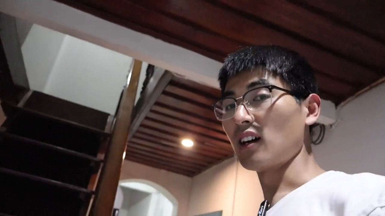 我现在有个问题,就现在要洗澡,那我现在到底是把鞋子穿进来了,还是直接打赤脚洗澡呢?我也不知道得,这个得去问一下那个其他人,我待会去问一下。看这个陡陡的楼梯,很难走的,要扶着我都怕他摔了。这都是一大奇观,快去问一下其他人。问一下老板。他说我可以穿拖鞋去洗澡。这个问题解决好了,穿上我的拖鞋去洗澡啦。