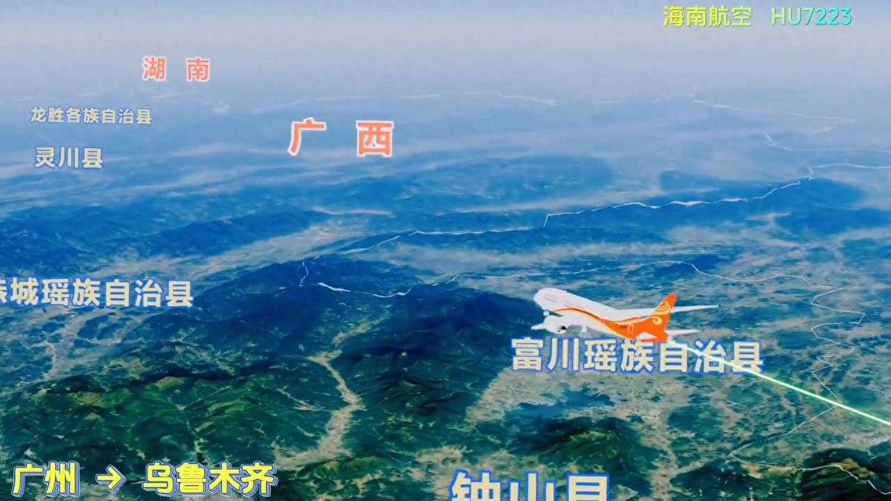 模拟飞行地图航拍:广州乌鲁木齐HU7223航班飞行航迹。