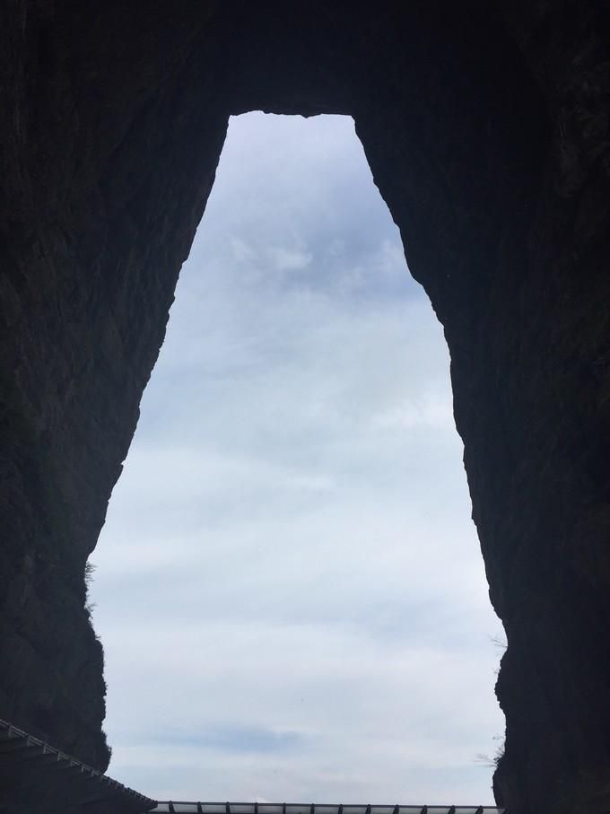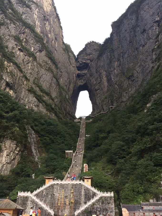 在 天门 洞下999个台阶的天梯后到达 天门 洞前广场