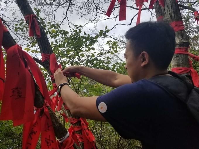 沿着栈道继续游玩会经过许愿林,将自己的愿望写在红布条上后绑在树上许下美好愿望