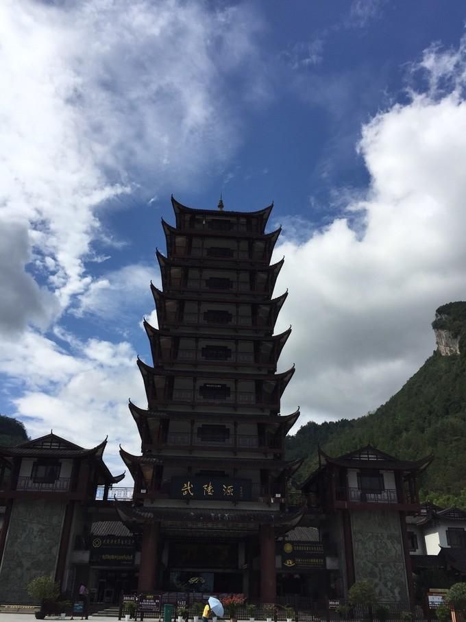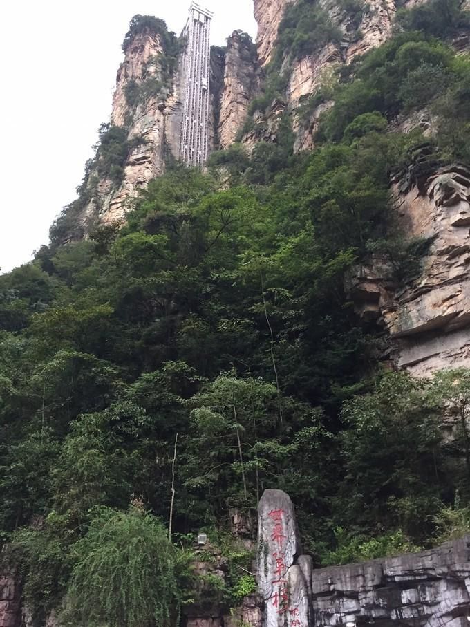天子山游玩后可以坐索道下山或者步行下山反走十里画廊,由于之前没有坐百龙天梯而是爬乱窜坡上山,想体验一下百龙天梯,于是乎从天子山乘坐环保车到了袁家界乘坐了百龙天梯下山,到了山下乘坐环保车送到 武陵源 标志门,在 武陵源 宾馆安排了住宿。