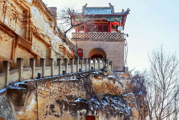 子洲西峰寺占地约3亩,乃为一个独院,该正殿是由三孔拱形洞组成,纯砖结构,顶呈硬山式,用黄色琉璃瓦铺顶,飞檐翘角,兽头独尊,遥遥相望,顶上中有三层小洞,独特精致,引人注目。