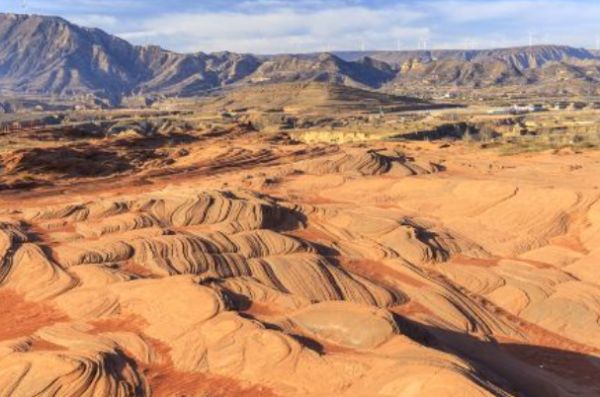 波浪谷,又称靖边红沙岩峡谷,靖边龙洲丹霞地貌,位于靖边县东南22公里处龙洲乡的闫家寨子,俗称闫寨子,波浪谷是一种红砂岩地貌,因岩砂上的纹路像波浪,被叫做TheWave,即波浪。