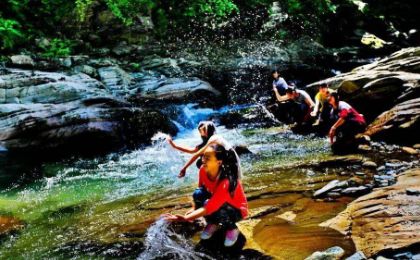 驱车距县城15公里的地方,便进入广佛镇太平河崇山峻岭的一个溪谷中,这里就是桃花溪了。