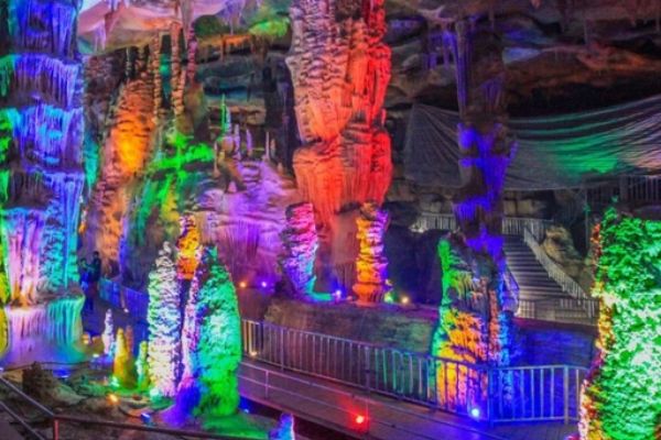 裂谷与亿万年形成的喀斯特溶洞紧密相连,洞内石花、石柱、石笋、石幔、石瀑遍布其中,形成了一幅幅神奇与美妙的画卷,依托洞内丰富的地下水资源,打造地下暗河漂流,是迄今为止最长的地下河漂流,水道蜿蜒曲折,惊险刺激。