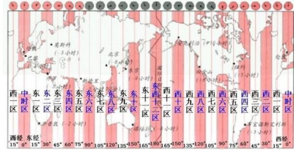 为了照顾到各地区的使用方便,又使其他地方的人容易将本地的时间换算到别的地方时间上去。有关国际会议决定将地球表面按经线从东到西,划成一个个区域,并且规定相邻区域的时间相差1小时。在同一区域内的东端和西端的人看到太阳升起的时间最多相差不过1小时。当人们跨过一个区域,就将自己的时钟校正1小时(向西减1小时,向东加1小时),跨过几个区域就加或减几小时。这样使用起来就很方便。